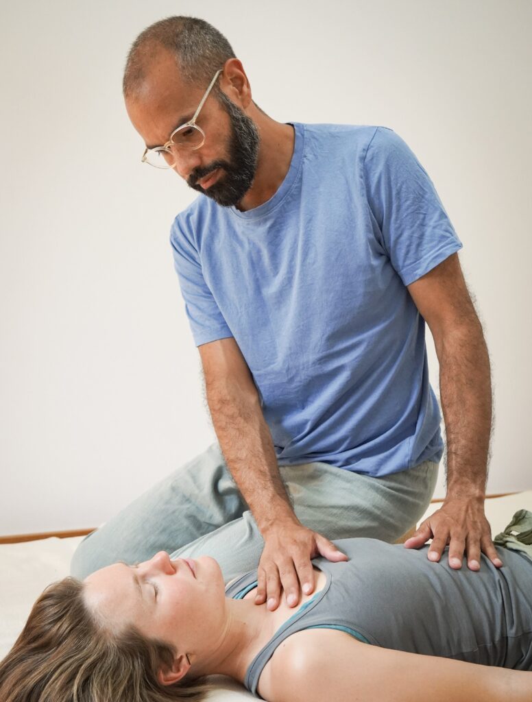 Ich begleite dich mit meiner Stimme und achte aufmerksam auf deinen Körper. Wenn ich Blockaden oder Spannungen wahrnehme, unterstütze ich sanft mit meinen Händen, um sie vorsichtig zu lösen. Wie sich das anfühlt, ist bei jedem Menschen unterschiedlich – je nach Thema, Tagesform und Tiefe des Prozesses.